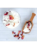 Organic Coconut Oil, Pure Cane sugar, Organic Wildflower Honey, Organic Primrose oil, Organic Rosehip Oil, Organic rose petals, Geranium essential oil to cleanse and promote healthy cell-renewal.